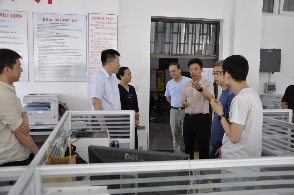 7月22日上午,校黨委書(shū)記蘭景力、校長(zhǎng)陳桂芝、副校長(zhǎng)王剛深入到學(xué)校網(wǎng)上招生錄取現(xiàn)場(chǎng),了解招生錄取工作進(jìn)展情況,看望慰問(wèn)了奮戰(zhàn)在招錄崗位上的工作人員。