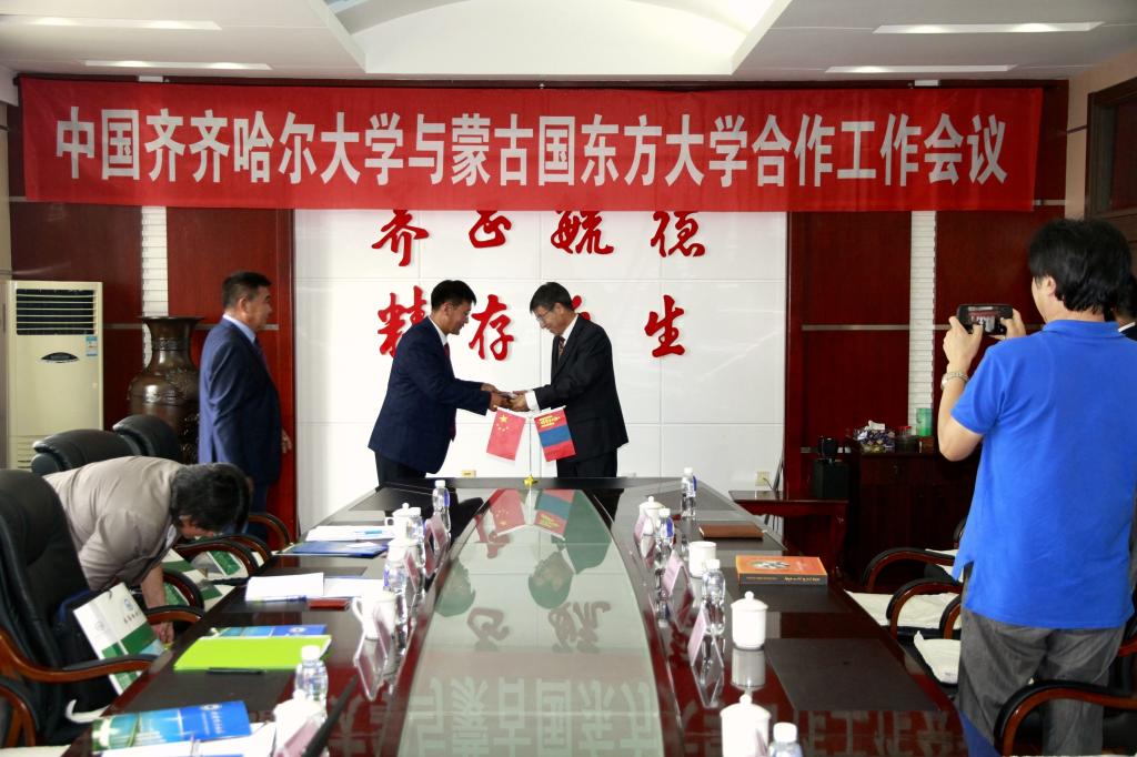 會上,張樹軍首先代表學(xué)校對蒙古國東方大學(xué)代表團來訪表示歡迎,并簡要介紹了我校的基本情況,以及我校在學(xué)科建設(shè)、人才培養(yǎng)、科學(xué)研究等領(lǐng)域的特色和國際合作與交流工作進展情況,回顧了與蒙古國東方大學(xué)交流合作歷史,建立的友好關(guān)系以及取得的成績。