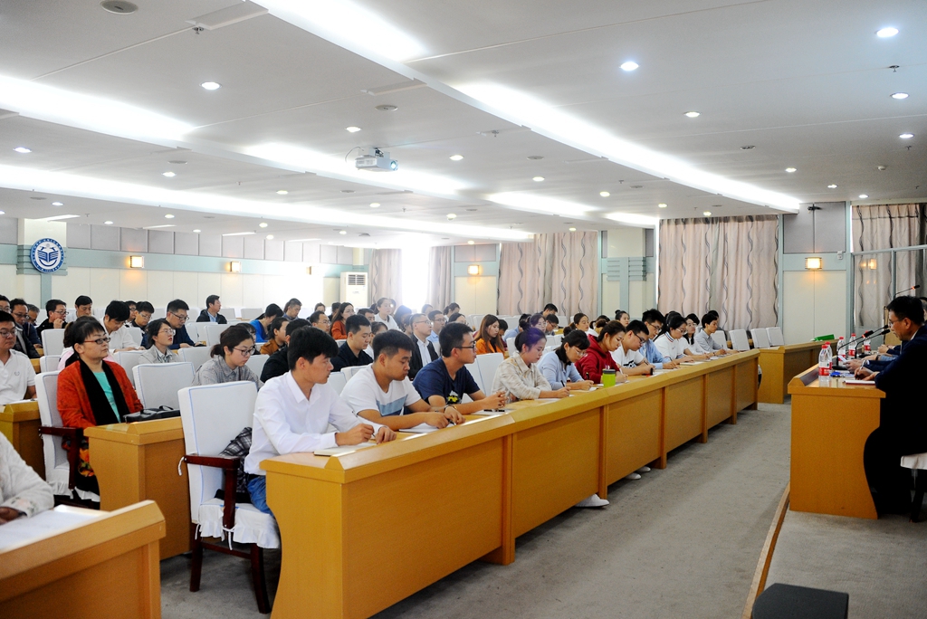 9月12日下午,學(xué)校在西區(qū)主樓七樓報(bào)告廳舉行2018年新教師崗前(崗位)培訓(xùn)開學(xué)式。校黨委副書記齊宏偉、副校長(zhǎng)李英杰出席開學(xué)式。人事處處長(zhǎng)劉喜軍、教務(wù)處處長(zhǎng)陶佰睿、高教研究中心(教師教學(xué)發(fā)展中心)副主任范曉峰、2018年新入職教師所在單位行政負(fù)責(zé)人、指導(dǎo)教師、培訓(xùn)教師以及46名新入職教師參加了開學(xué)式。開學(xué)式由劉喜軍主持。