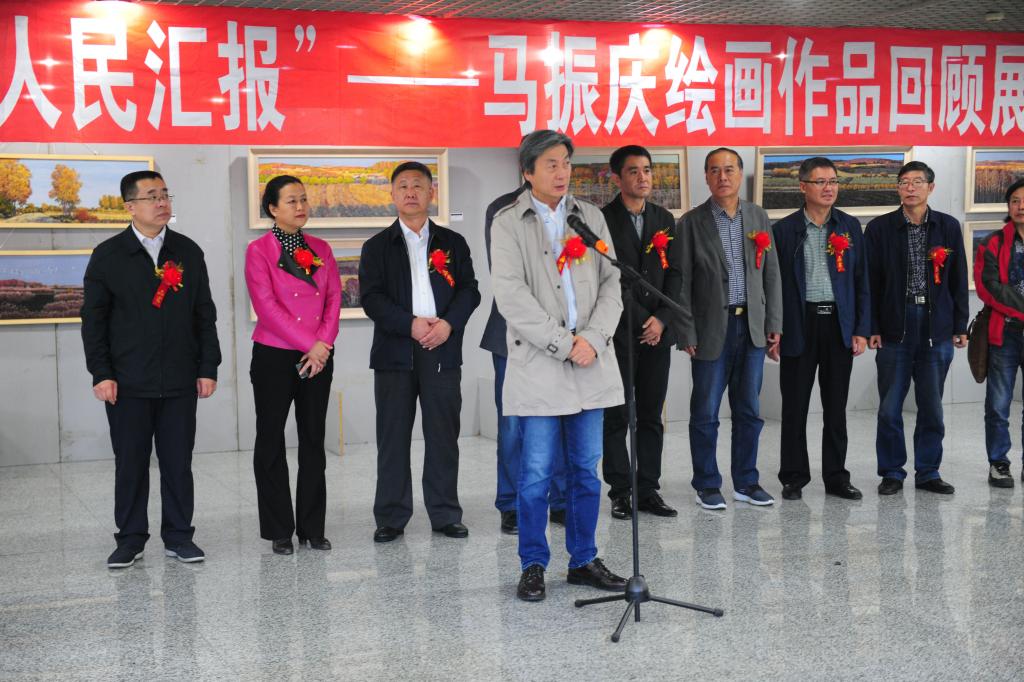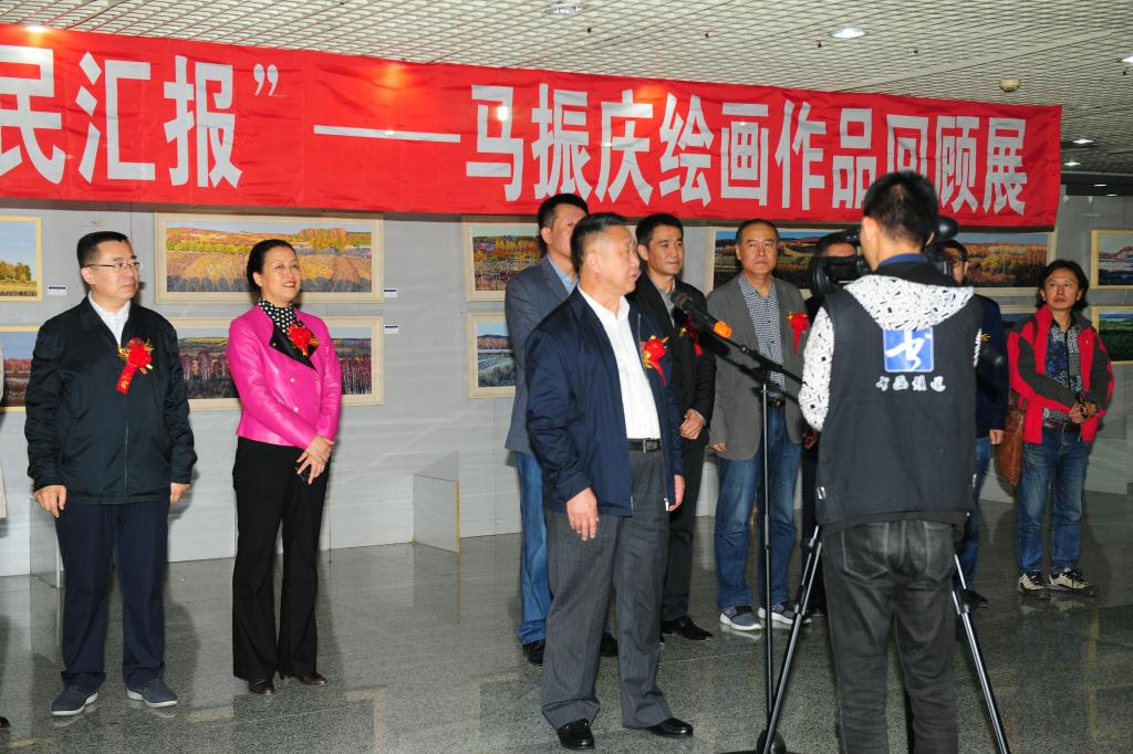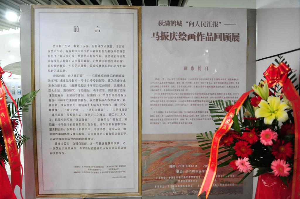 9月14日上午,由齊齊哈爾市文學(xué)藝術(shù)界聯(lián)合會、《齊齊哈爾日報(bào)》報(bào)業(yè)集團(tuán)、黑龍江省油畫學(xué)會、齊齊哈爾大學(xué)共同主辦,齊齊哈爾市美術(shù)家協(xié)會、齊齊哈爾大學(xué)美術(shù)與設(shè)計(jì)學(xué)院承辦的秋滿鶴城“向人民匯報(bào)” 馬振慶繪畫作品回顧展在齊齊哈爾大學(xué)美術(shù)館開幕。