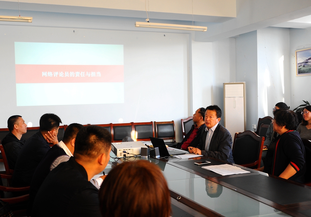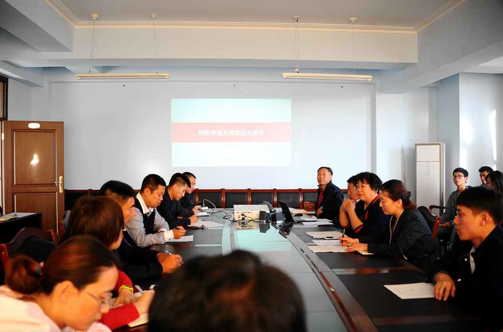 會(huì)上,孟憲國(guó)以《網(wǎng)絡(luò)評(píng)論員的責(zé)任與擔(dān)當(dāng)》為題,圍繞網(wǎng)絡(luò)評(píng)論工作指導(dǎo)思想,網(wǎng)絡(luò)評(píng)論員的工作要求、主要職責(zé)、工作重點(diǎn)、日常工作紀(jì)律等方面內(nèi)容,對(duì)評(píng)論員隊(duì)伍進(jìn)行了專題輔導(dǎo)培訓(xùn),重點(diǎn)闡述了什么是網(wǎng)絡(luò)評(píng)論員、網(wǎng)絡(luò)評(píng)論員要做什么、網(wǎng)絡(luò)評(píng)論員該怎樣做、網(wǎng)絡(luò)評(píng)論員的基本素質(zhì)要求、當(dāng)前網(wǎng)絡(luò)評(píng)論員隊(duì)伍存在的主要問(wèn)題、網(wǎng)絡(luò)評(píng)論員提升工作能力的技巧等內(nèi)容。
