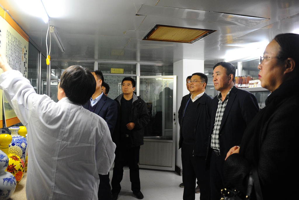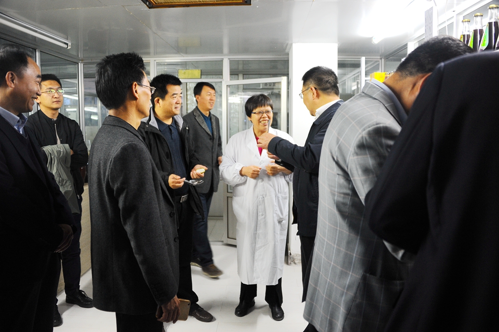 在省果蔬雜糧飲品工程技術(shù)研究中心,食品與生物工程學(xué)院副院長郭成宇向李海紅一行介紹了研發(fā)中心的科研開發(fā)情況、主要研發(fā)產(chǎn)品以及成果轉(zhuǎn)化情況。