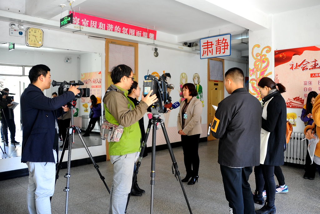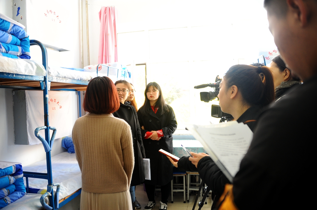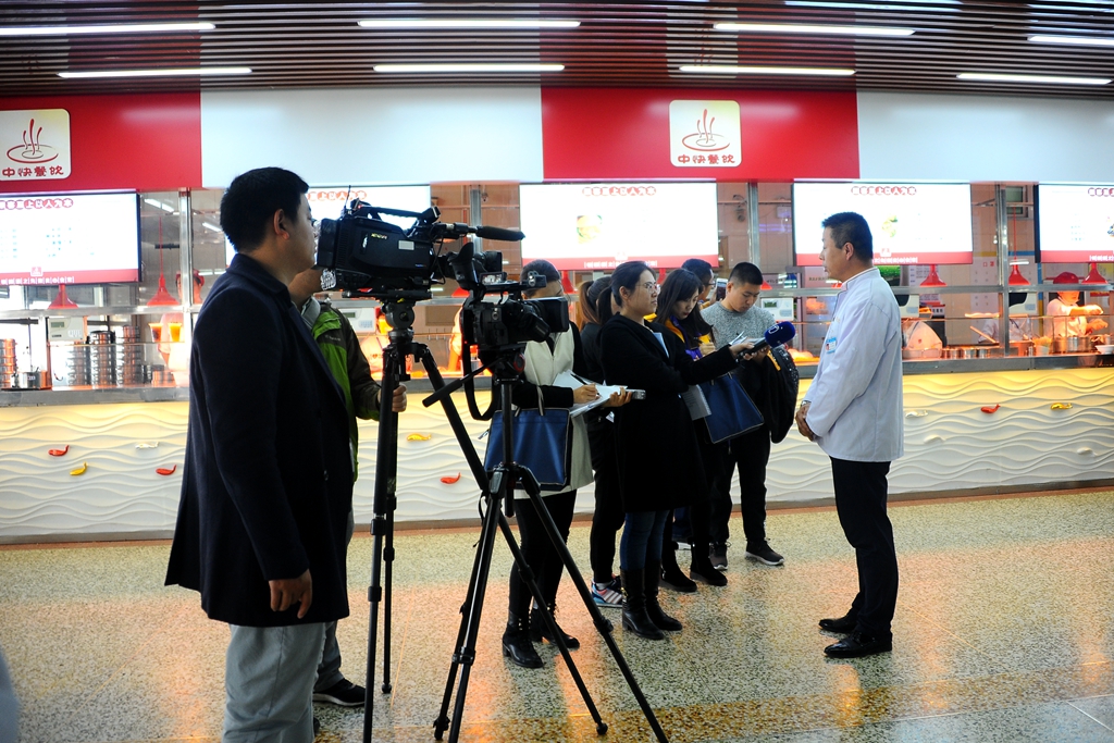會后,媒體采訪團一行先后來到我校中區(qū)圖書館、學(xué)生洗浴中心、第13號學(xué)生公寓,東區(qū)第8號學(xué)生公寓、東區(qū)學(xué)生洗浴中心施工現(xiàn)場、學(xué)生事務(wù)服務(wù)中心以及中區(qū)學(xué)生餐飲中心等場所。重點對宿舍環(huán)境改造、宿舍樓內(nèi)水房、衛(wèi)生間改建,洗浴中心條件改善,食堂菜品質(zhì)量種類、食品衛(wèi)生安全和宿舍樓門禁系統(tǒng)等整改項目進行了實地走訪拍攝,并隨機采訪了校長陳桂芝及部分師生代表。