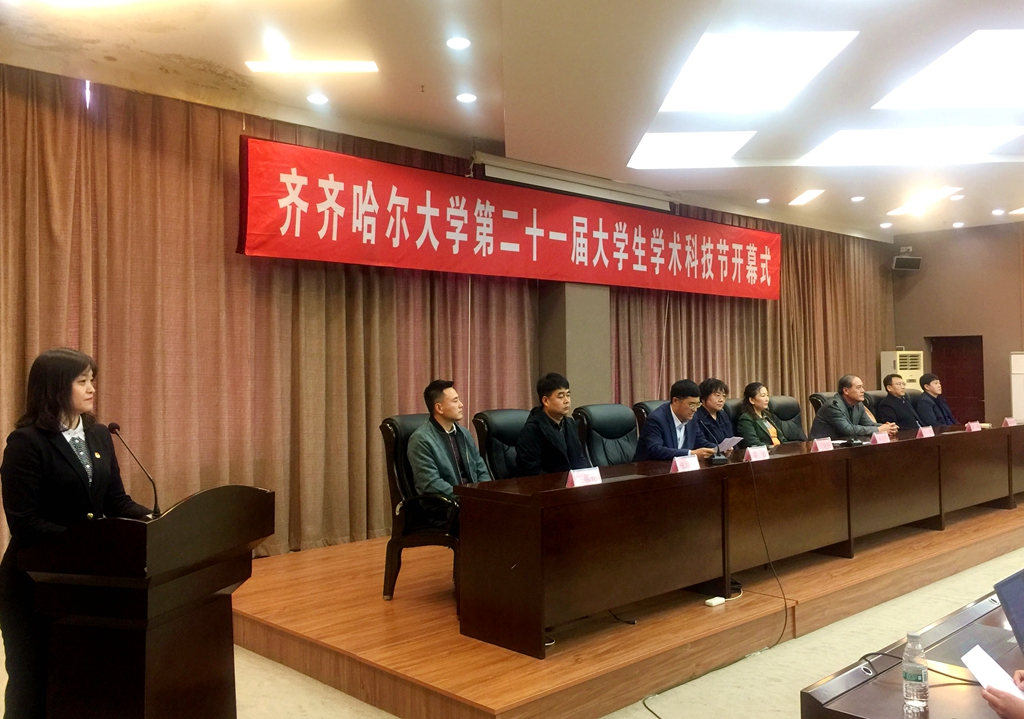 開幕式上,姜波宣讀了《齊齊哈爾大學第二十一屆大學生學術科技節(jié)實施方案》。