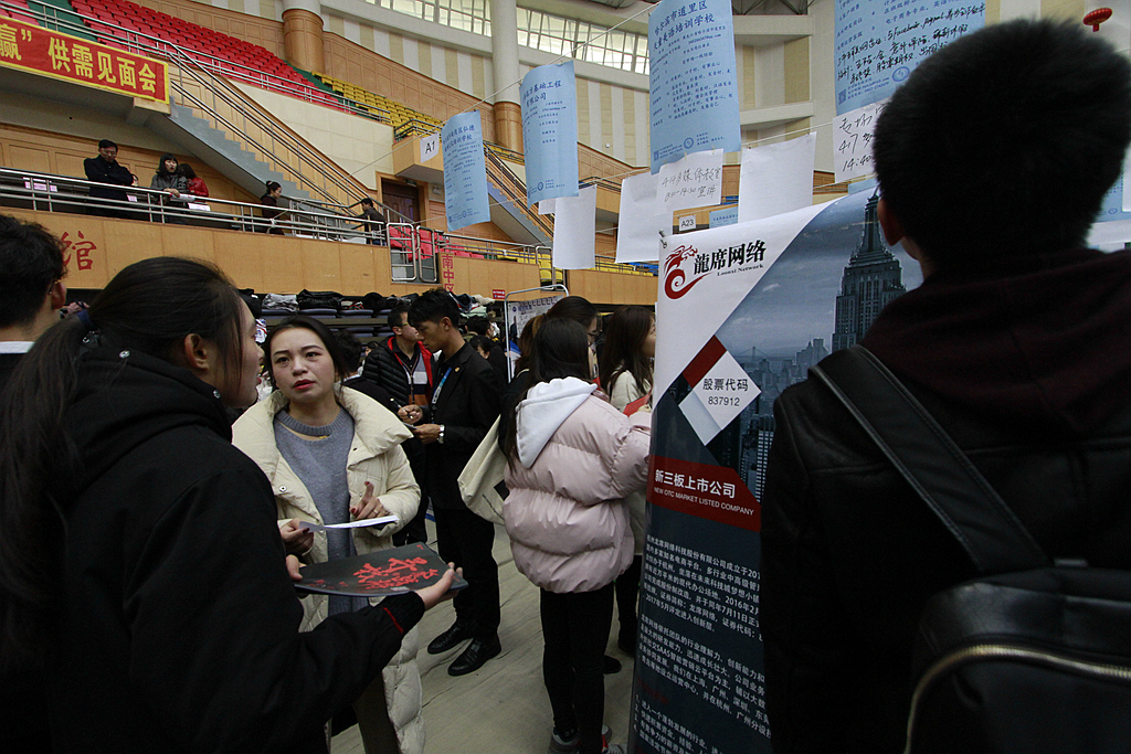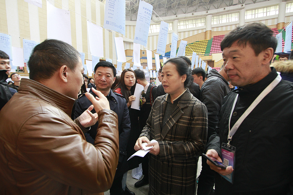 11月4日下午,在西區(qū)教學(xué)主樓又進(jìn)行了165場(chǎng)專場(chǎng)宣講會(huì)和面試,一些用人單位與畢業(yè)生做了進(jìn)一步的交流和洽談。