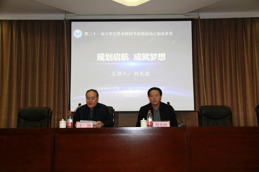 下午兩點(diǎn),劉光波在我校第二十一屆大學(xué)生學(xué)術(shù)科技節(jié)的創(chuàng)業(yè)講堂上做了主題為“規(guī)劃起航 成就夢(mèng)想”的創(chuàng)業(yè)講座。