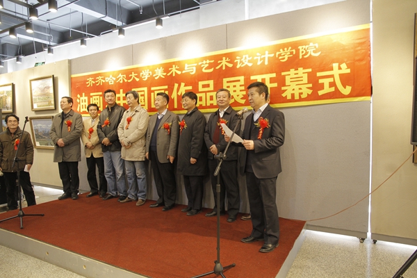 李英杰在致辭中說,感謝省教育廳為我們提供了這個展示和交流的平臺。在這春暖花開的季節(jié),齊齊哈爾大學(xué)油畫、中國畫作品展覽在這里開幕,得到了各界朋友們的關(guān)心和支持,我代表齊齊哈爾大學(xué)表示誠摯的感謝。按照省教育廳的安排和要求,我校精心組織籌備了這次畫展,這次參展的作品都是我校美術(shù)與藝術(shù)設(shè)計學(xué)院教師們近幾年的新作。藝術(shù)創(chuàng)作和教學(xué)工作相輔相成,藝術(shù)創(chuàng)作中的學(xué)術(shù)探索能夠為教學(xué)提供新的理念,新的方法和嫻熟技能;學(xué)生的需求和教學(xué)質(zhì)量評價又督促教師通過藝術(shù)創(chuàng)作提高自身的藝術(shù)素養(yǎng)和水平。