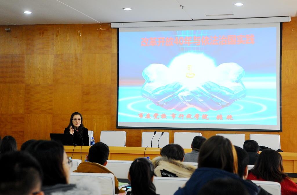 齊齊哈爾市委黨校教育長張艷教授在論壇上做了題為《改革開放40周年與依法治國實踐》的專題學(xué)術(shù)報告,并與同學(xué)們進(jìn)行了交流互動。