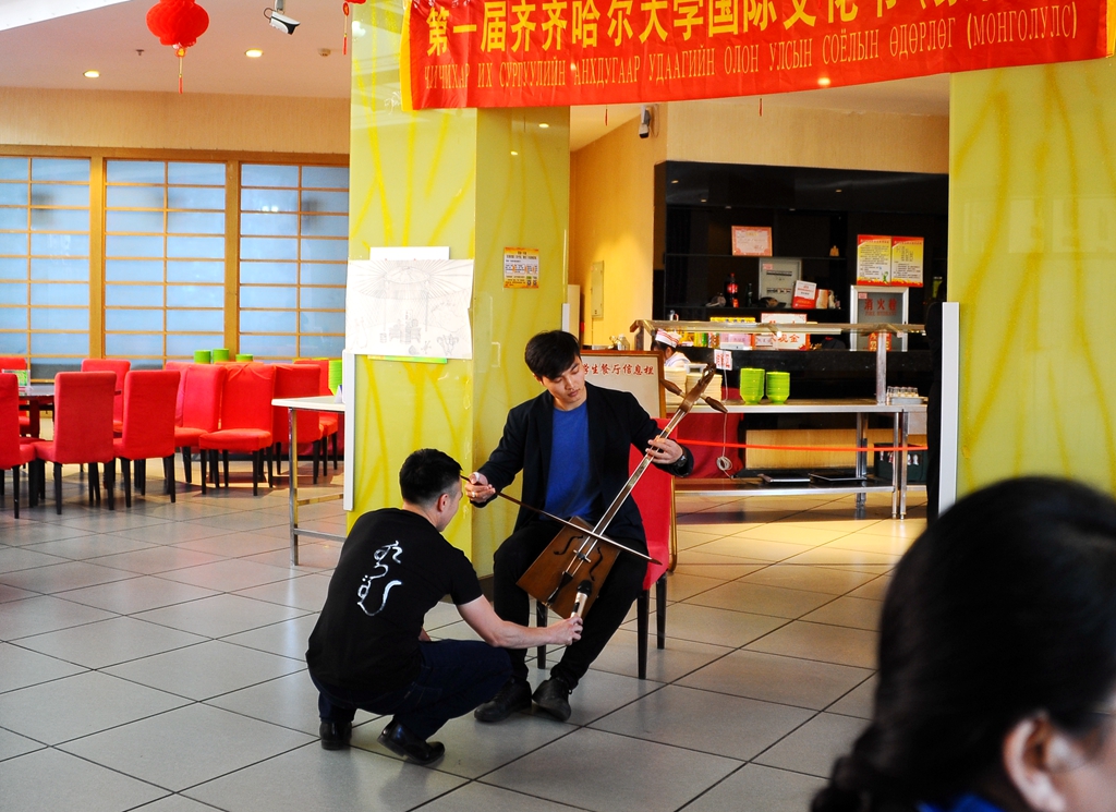 活動(dòng)中,蒙古留學(xué)生表演了精彩的蒙古歌舞和樂器演奏等節(jié)目,將留學(xué)生餐廳中的氣氛一次次推向高潮。