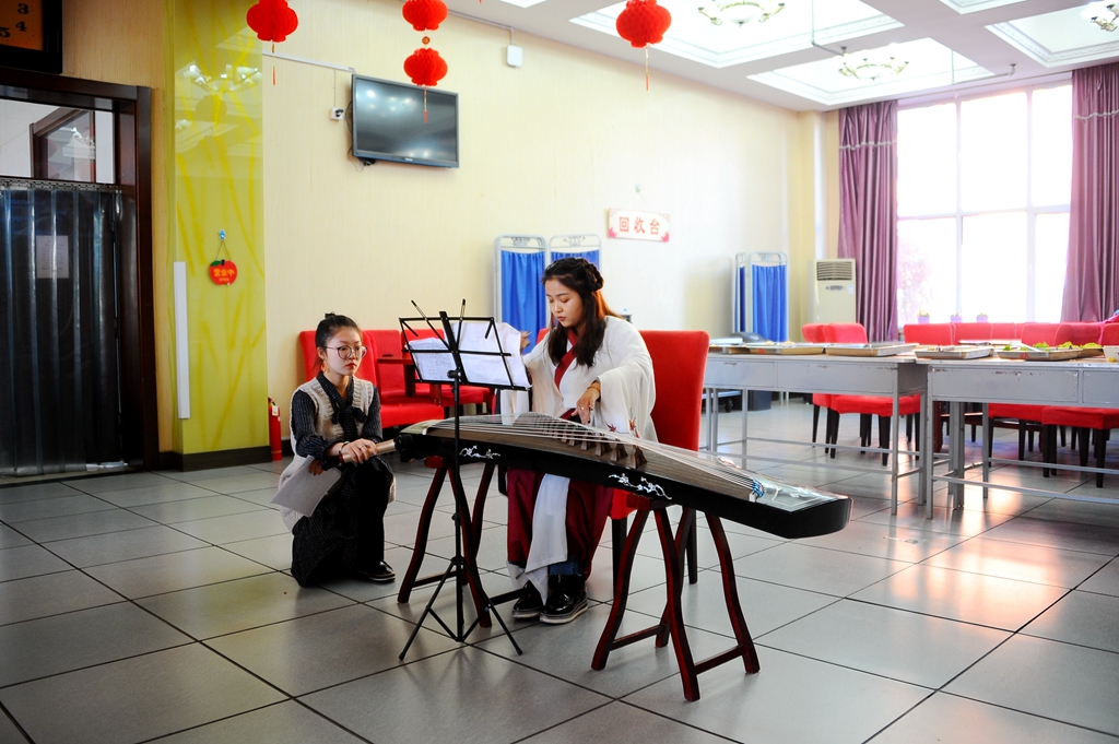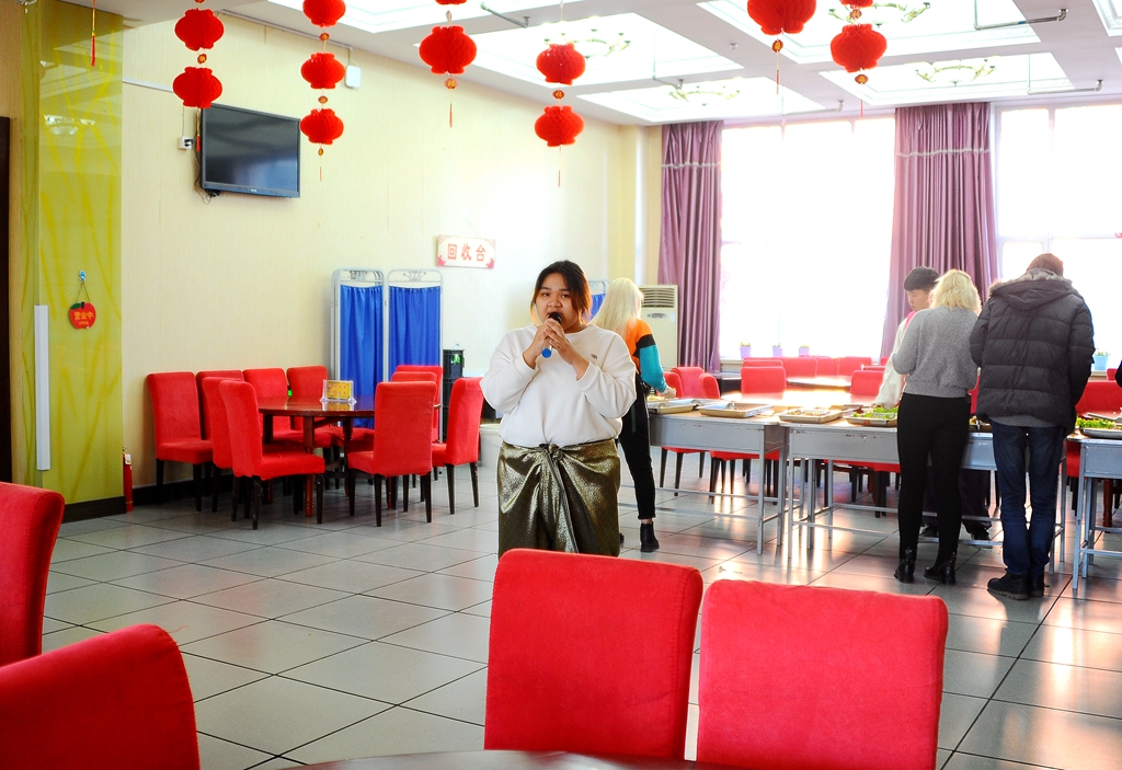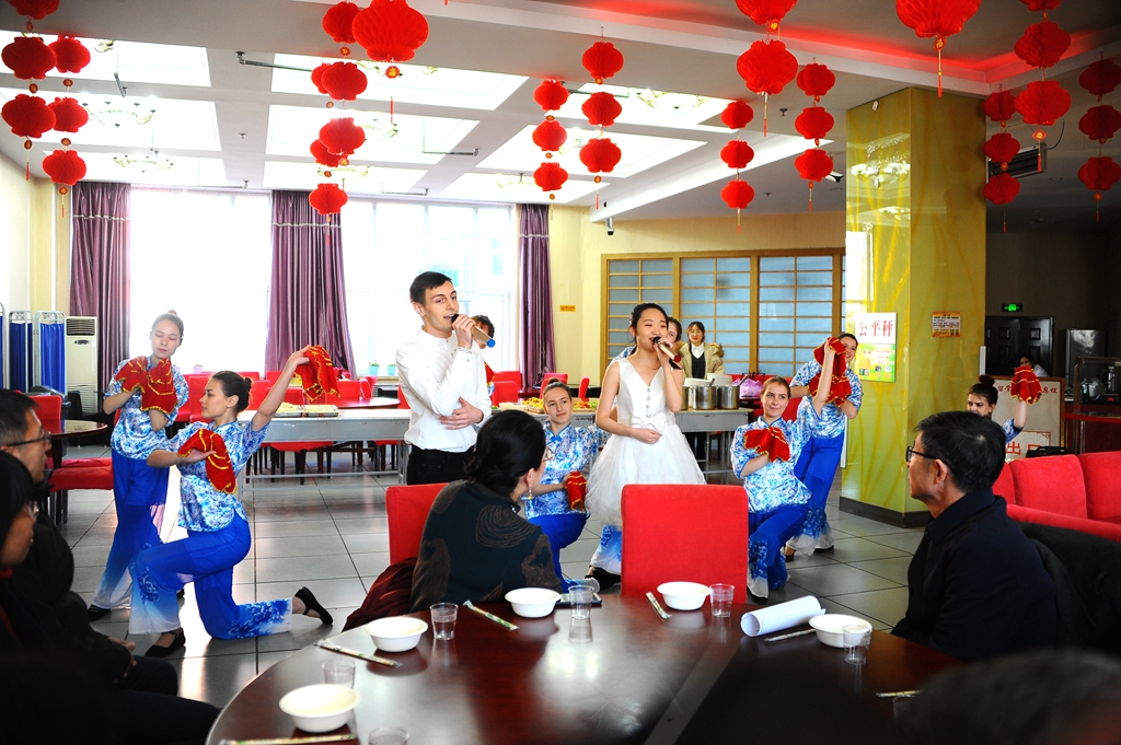 在極具中國風(fēng)的民歌《采紅菱》伴奏下,身著中國民族服裝的俄羅斯留學(xué)生和中國學(xué)生翩翩起舞,向來賓表達(dá)敬意。