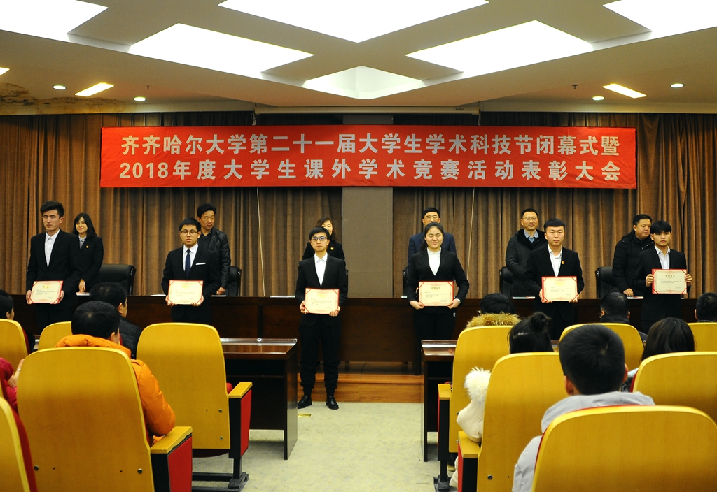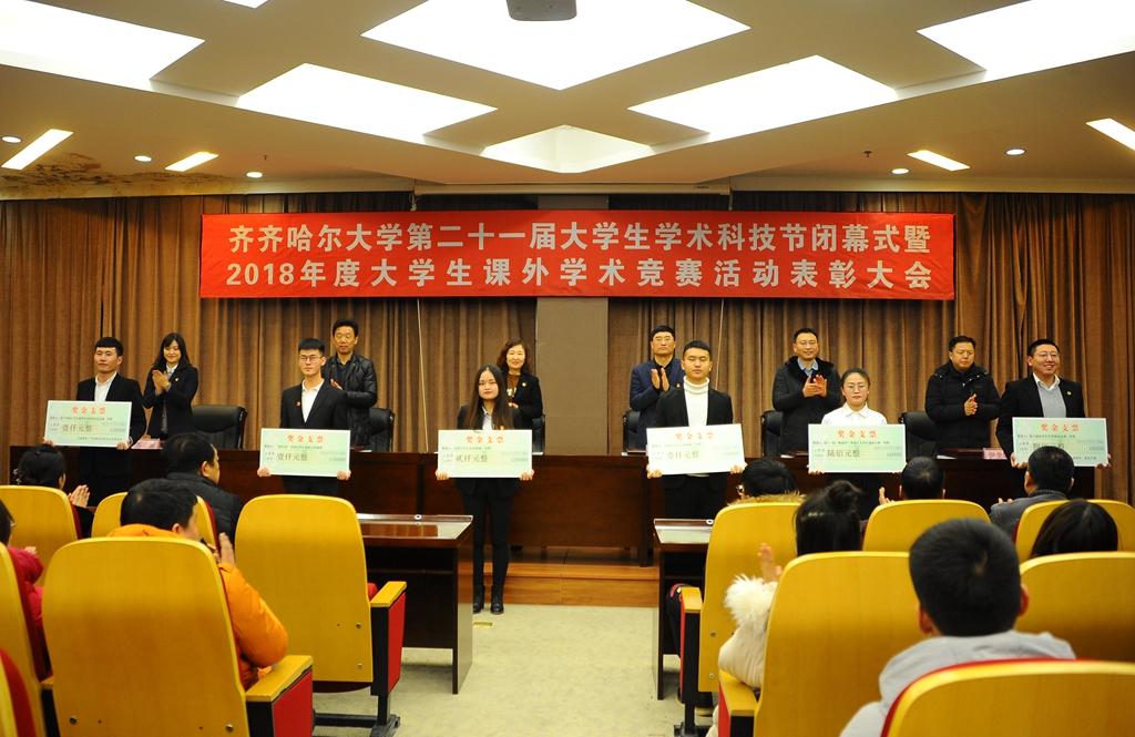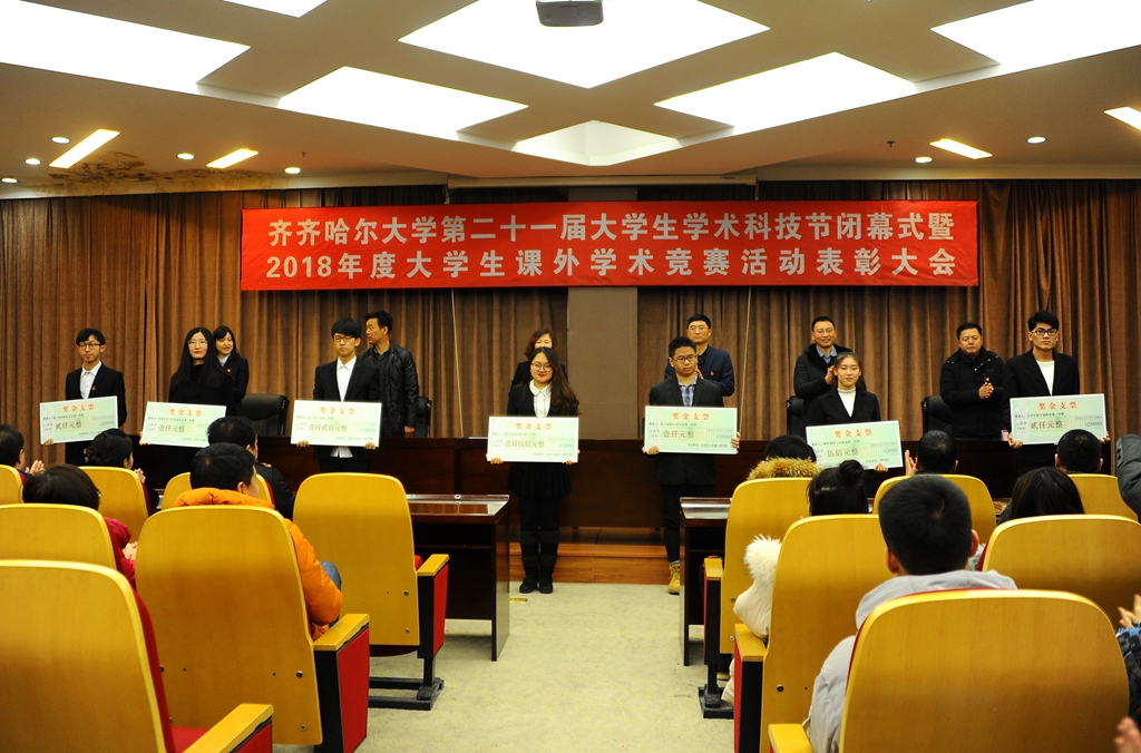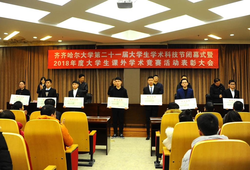 閉幕式上,招生就業(yè)處處長(zhǎng)楊國(guó)志宣讀了《關(guān)于命名表彰2018年度學(xué)生課外學(xué)術(shù)競(jìng)賽活動(dòng)先進(jìn)個(gè)人的決定》,學(xué)生工作部(學(xué)生處)部(處)長(zhǎng)姜波宣讀了《齊齊哈爾大學(xué)第二十一屆大學(xué)生學(xué)術(shù)科技節(jié)校級(jí)競(jìng)賽獲獎(jiǎng)名單》,教務(wù)處處長(zhǎng)陶佰睿宣讀了《第六屆研究生科技創(chuàng)新作品競(jìng)賽獲獎(jiǎng)名單》。