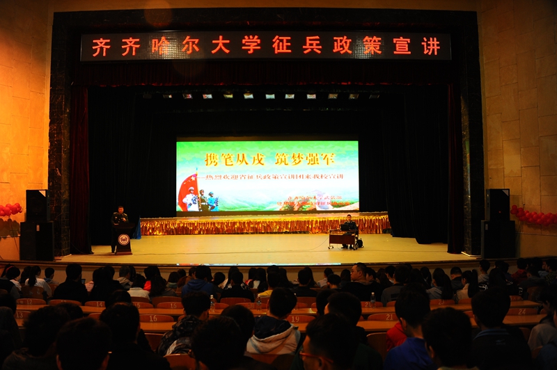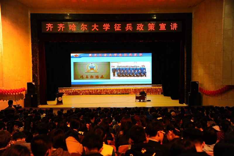 建華區(qū)人武部部長、建華區(qū)征兵辦公室主任王威,齊齊哈爾大學(xué)武裝部部長吳剛,武裝部政委付建成,保衛(wèi)處副處長劉增發(fā),各學(xué)院學(xué)生1200余人參加了此次宣講會。