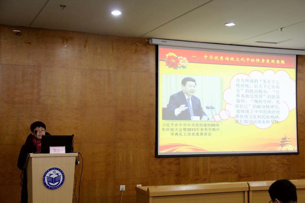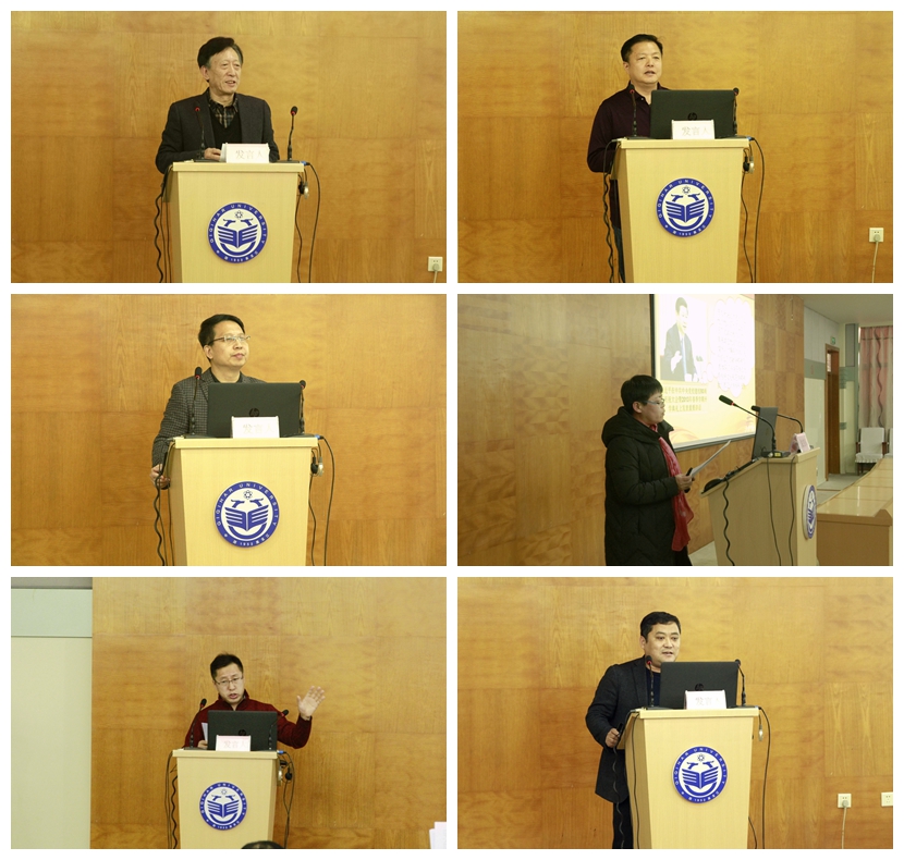 按照會議日程,校督學、碩士生導師王樹松教授,科研處副處長、碩士生導師伊全勝教授,黨委宣傳統(tǒng)戰(zhàn)部副部長、碩士生導師何強教授,馬克思主義學院思想道德修養(yǎng)與法律基礎(chǔ)教研部主任、碩士生導師王永明教授,馬克思主義學院中國近現(xiàn)代史綱要教研部主任、碩士生導師張春波副教授,哲學與法學學院政治學與行政學專業(yè)主任徐鳳江副教授,分別以《習近平新時代中國特色社會主義思想哲學方法論意蘊》《論精準扶貧、精準脫貧中的民主監(jiān)督》《習近平“實事求是論”的實踐理性》《習近平青年社會責任觀的理論探源》《中國共產(chǎn)黨為國為民情懷的歷史演進與時代表征》《中國特色社會主義新時代社會主要矛盾的教學邏輯闡釋》為題,與參會領(lǐng)導、師生分享了他們一年來研究習近平新時代中國特色社會主義思想的最新理論成果。六位專家學者淵博厚重的學識,深入淺出的闡釋,嚴謹周密的邏輯,凝練質(zhì)樸的語言,營造了非常濃郁的學術(shù)氛圍,拓展了大家對習近平新時代中國特色社會主義思想的認識,博得了現(xiàn)場觀眾的陣陣掌聲。