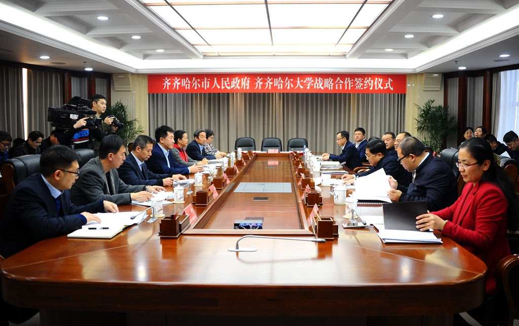 12月20日下午,齊齊哈爾市人民政府和齊齊哈爾大學戰(zhàn)略合作簽約儀式在市黨政機關辦公中心舉行,省人大常委會副主任、齊齊哈爾市委書記孫珅,市委常委、龍江縣委書記王兆憲,副市長姚卿,市政府副秘書長劉海濤,我校黨委書記蘭景力、校長陳桂芝、副校長李英杰、副校長呂厚均出席簽約儀式。王兆憲主持簽約儀式。