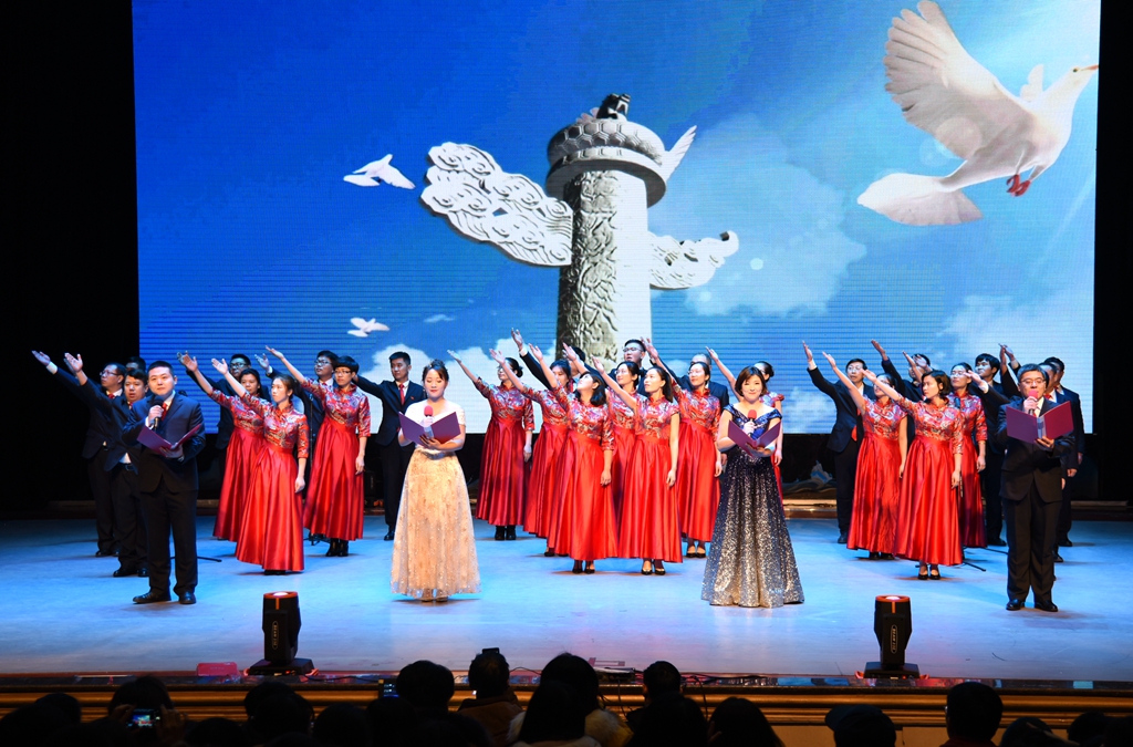 公共外語教研部張丹、肖長生等帶來的英文歌曲聯(lián)唱《Warm、The Day You Went Away、Auld Lang Syne》,伴隨著熟悉的旋律響起,全場觀眾一起隨音樂輕聲哼唱,尋找著那些曾經(jīng)的回憶。