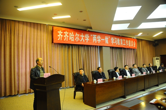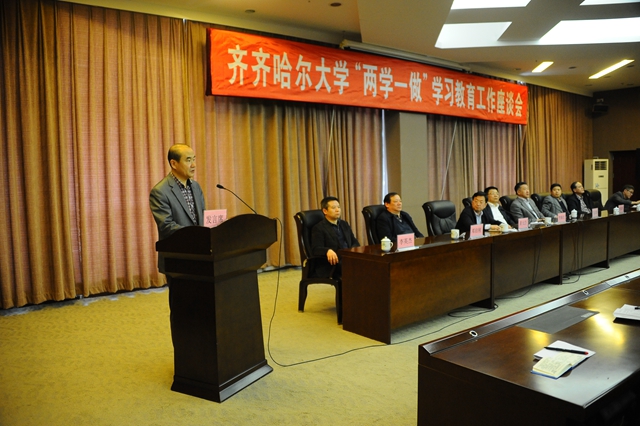 校黨委書記李海紅在全?!皟蓪W(xué)一做”學(xué)習(xí)教育工作座談會(huì)上講話。他指出,這次會(huì)議的主要任務(wù)是,深入學(xué)習(xí)貫徹習(xí)近平總書記關(guān)于“兩學(xué)一做”學(xué)習(xí)教育重要指示、省委書記王憲魁講話精神,省委高校工委書記、省教育廳廳長(zhǎng)徐梅在全省高?!皟蓪W(xué)一做”學(xué)習(xí)教育工作座談會(huì)上的講話精神,安排部署全校學(xué)習(xí)教育工作,我要把思想和行動(dòng)統(tǒng)一到中央、省委和省委高校工委要求部署上來,進(jìn)一步統(tǒng)一思想、明確任務(wù),凝聚力量、狠抓落實(shí),確保學(xué)習(xí)教育扎實(shí)深入開展。