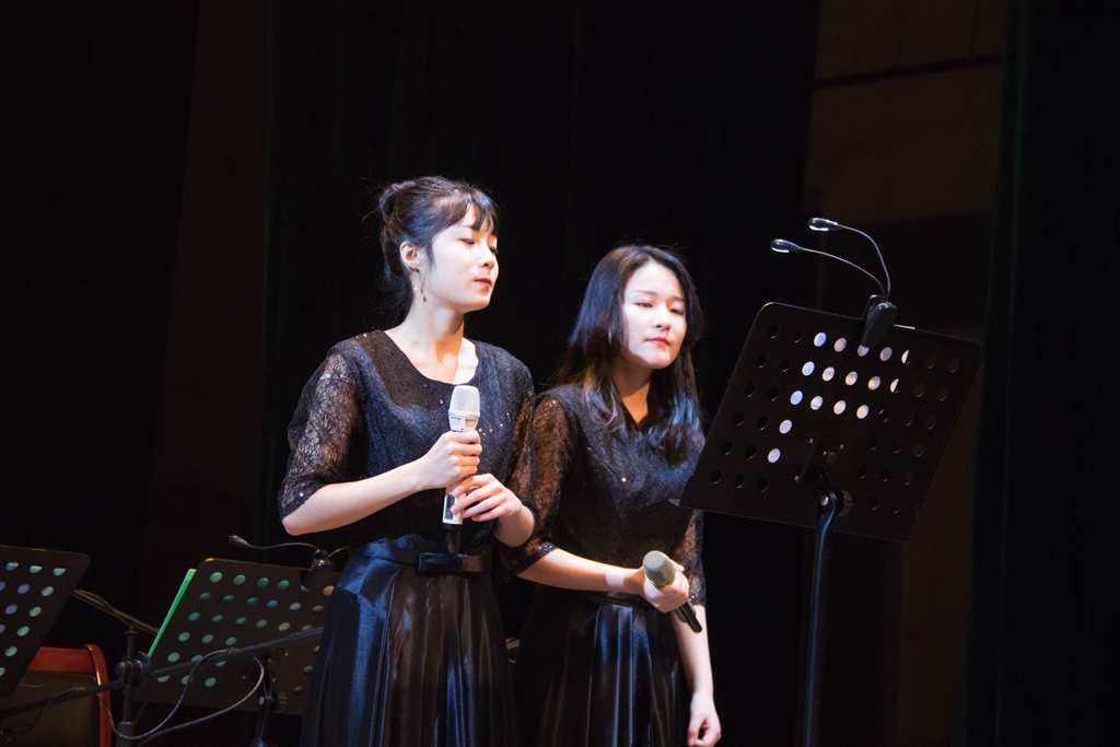 來自音樂與舞蹈學(xué)院的特邀嘉賓陳丹丹和鄧重博在爵士樂團精彩的伴樂下演唱了歌曲《Who Walks In When I Walk Out》,歌曲和爵士樂的組合贏得了觀眾的陣陣掌聲。