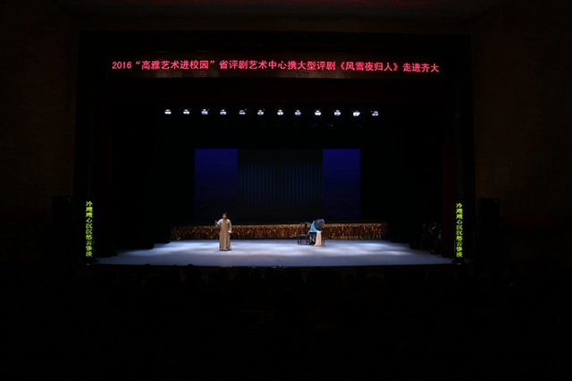 5月5日,2016“高雅藝術(shù)進(jìn)校園”省評(píng)劇藝術(shù)中心攜大型評(píng)劇《風(fēng)雪夜歸人》走進(jìn)齊齊哈爾大學(xué)。我校黨委書(shū)記李海紅、黨委宣傳部副部長(zhǎng)何強(qiáng)和1300余名師生共同欣賞了黑龍江省評(píng)劇藝術(shù)中心的藝術(shù)家們帶來(lái)的大型評(píng)劇《風(fēng)雪夜歸人》。本次活動(dòng)由我校黨委宣傳部、學(xué)生工作部(處)共同組織。