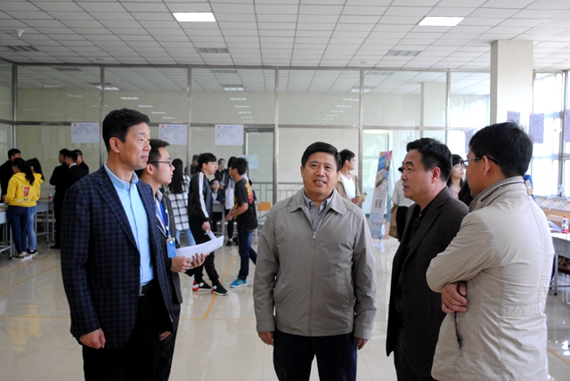我校黨委常委、常務(wù)副校長鄭喜群,齊齊哈爾市勞動就業(yè)局副局長王玉林,市人才服務(wù)局副調(diào)研員黨福慶,就業(yè)指導處處長楊國志等進行了現(xiàn)場指導。