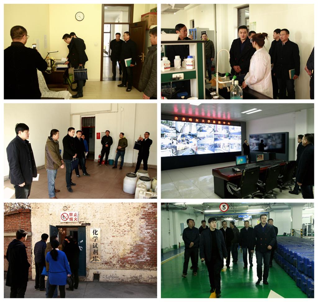 隨后,檢查組一行在陶佰睿及有關(guān)部門負責人陪同下先后來到學(xué)校值班室、化學(xué)與化學(xué)工程學(xué)院教學(xué)及科研實驗室、工程技術(shù)中心危險廢物貯存室、校保衛(wèi)處110報警中心監(jiān)控室、化學(xué)試劑庫、學(xué)生文體活動中心等安全風險管控重點部位進行了細致檢查并現(xiàn)場提出了整改意見和建議。