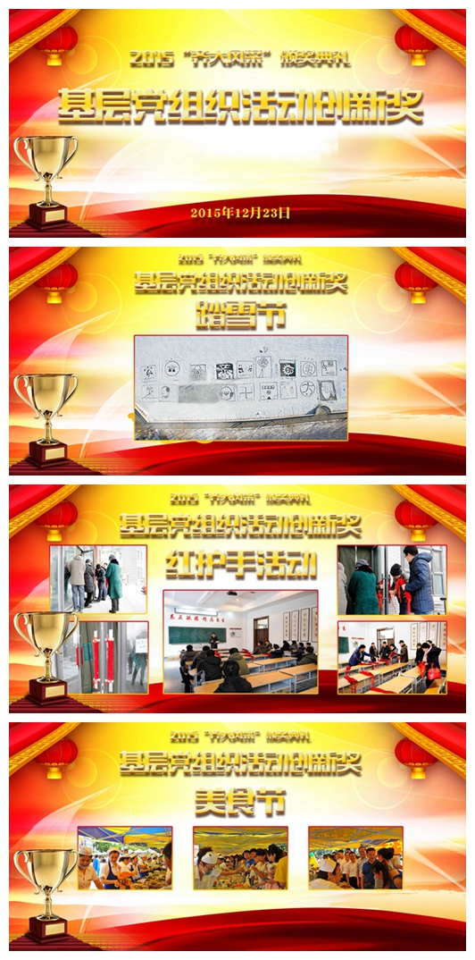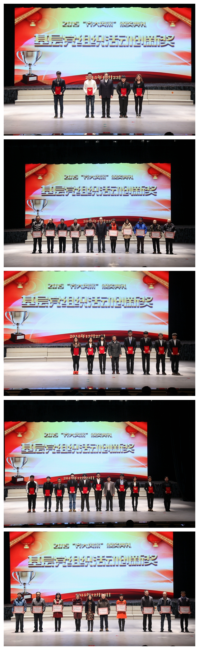 12月22日,校黨委作出《關(guān)于對基層黨組織活動創(chuàng)新進行表彰的決定》(齊大黨字[2015]37號)。機關(guān)黨委 、教務處黨支部、美術(shù)與藝術(shù)設(shè)計學院黨委 、校團委、文學與歷史文化學院黨委、后勤黨委等分別榮獲基層黨組織活動創(chuàng)新獎。