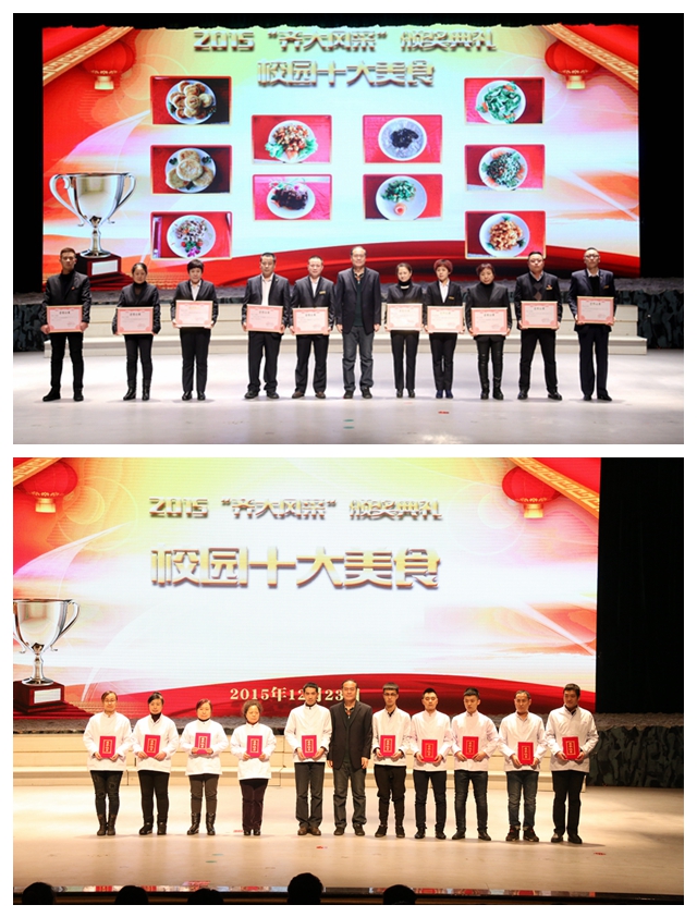 “齊齊哈爾大學2015‘齊大風采’頒獎典禮”分為四個環(huán)節(jié),第一環(huán)節(jié)公布2015年“校園十大新聞”、“校園十大景觀”投票結(jié)果和2015年考研統(tǒng)計數(shù)據(jù);第二環(huán)節(jié)分別為“基層黨組織活動創(chuàng)新獎”、“踏雪節(jié)優(yōu)秀作品獎”、“校園十大新聞人物”、“曬一曬 比一比 最美齊大人”主題攝影活動、“首屆校園十大美食”獲獎人員進行頒獎。第三環(huán)節(jié)為學校“十大學術(shù)活動”和“十大學術(shù)成果”頒獎;第四環(huán)節(jié)為獲得學?!叭讼冗M集體”、“先進個人”和榮獲“先進標兵”稱號的個人和單位頒獎。