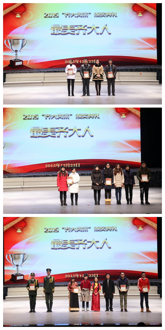 2015年“齊大風采”獲獎集體和個人充分展示了我校師生一年來踐行核心價值觀、大力創(chuàng)新創(chuàng)業(yè)的時代風采。面對未來,迎接挑戰(zhàn),全校師生將用激情和汗水共同譜寫高水平大學建設(shè)的美好篇章。