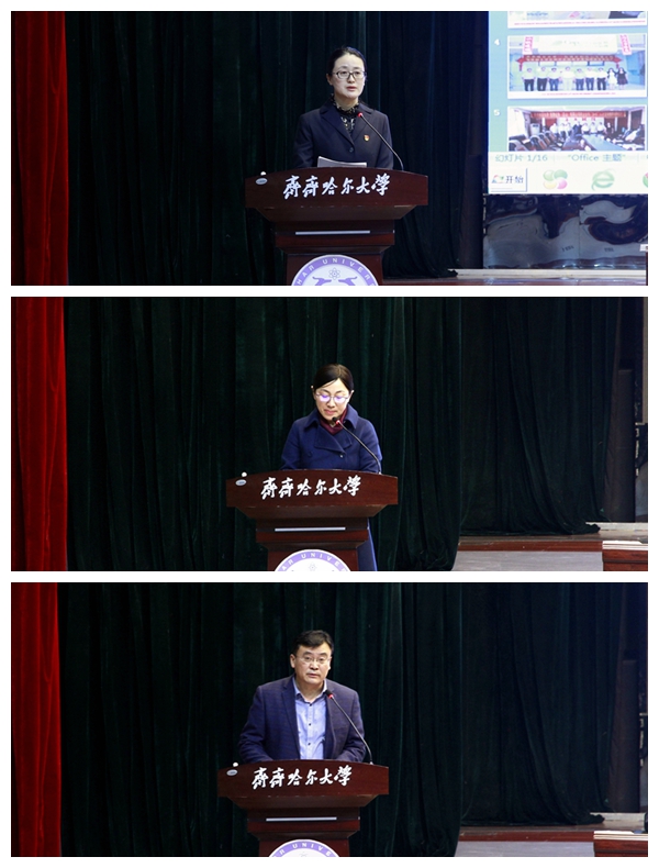 隨后,李英杰部署了學(xué)校2019年本科教學(xué)主要工作。他指出,2019年本科教學(xué)工作緊緊圍繞審核評(píng)估整改及巡視整改要求,以及齊齊哈爾大學(xué)2019年工作要點(diǎn),勇于直面問(wèn)題和挑戰(zhàn),補(bǔ)齊短板,以一流專業(yè)建設(shè)、一流課程建設(shè)、培養(yǎng)一流應(yīng)用本科人才為目標(biāo),狠抓落實(shí),不斷扎實(shí)推進(jìn)各項(xiàng)本科教學(xué)工作取得實(shí)效,實(shí)現(xiàn)人才培養(yǎng)質(zhì)量新跨越。2019年學(xué)校本科教學(xué)應(yīng)重點(diǎn)做好以下幾方面工作:一是深化學(xué)科專業(yè)結(jié)構(gòu)調(diào)整,推動(dòng)學(xué)校應(yīng)用型轉(zhuǎn)型發(fā)展,加強(qiáng)一流本科專業(yè)建設(shè);二是著力推動(dòng)課堂教學(xué)革命,努力培育“金課”,加快一流課程建設(shè);三是改革教學(xué)管理規(guī)章制度,加強(qiáng)本科教學(xué)秩序治理,為推進(jìn)一流人才培養(yǎng)提供制度保障;四是打造一流校內(nèi)外實(shí)習(xí)實(shí)訓(xùn)教學(xué)平臺(tái),強(qiáng)化產(chǎn)教融合協(xié)同育人,為應(yīng)用型人才培養(yǎng)奠定堅(jiān)實(shí)的基礎(chǔ);五是完善雙創(chuàng)教育管理體系,有效推進(jìn)雙創(chuàng)工作,提高學(xué)生綜合素質(zhì);六是加強(qiáng)高等教育研究項(xiàng)目的培育,提高高教研究水平,助力提升本科教學(xué)質(zhì)量;七是加強(qiáng)師資培訓(xùn),促進(jìn)教師發(fā)展,切實(shí)增強(qiáng)教書育人本領(lǐng),培育一流教師隊(duì)伍;八是改革教學(xué)獎(jiǎng)勵(lì)激勵(lì)機(jī)制,促進(jìn)教師教學(xué)精力的投入,激發(fā)教師參與教育教學(xué)改革的內(nèi)生動(dòng)力;九是拓展對(duì)外合作交流新空間,著力提高國(guó)際化辦學(xué)水平;十是不斷完善教育教學(xué)質(zhì)量保障體系,科學(xué)評(píng)價(jià)教師教學(xué)質(zhì)量,推進(jìn)教育教學(xué)質(zhì)量文化建設(shè)。