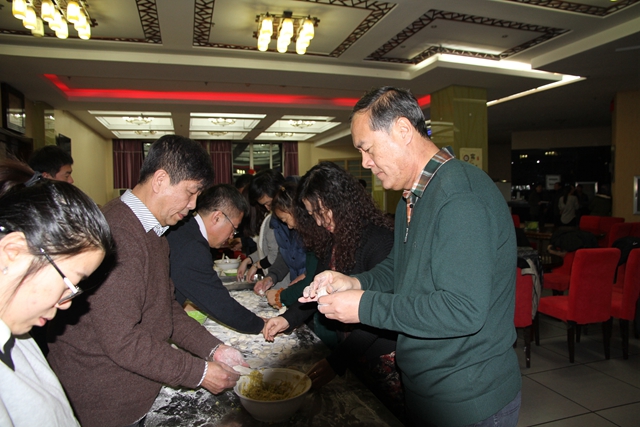 校領(lǐng)導(dǎo)李海紅、馬立群、蓋元臣、鄭喜群、王剛、李英杰、姜國(guó)慶、李敏義和校黨委常委、組織部部長(zhǎng)齊宏偉等校、處領(lǐng)導(dǎo)一起深入到各食堂,來(lái)到師生們中間,一起包餃子,慶元旦,迎新年。
