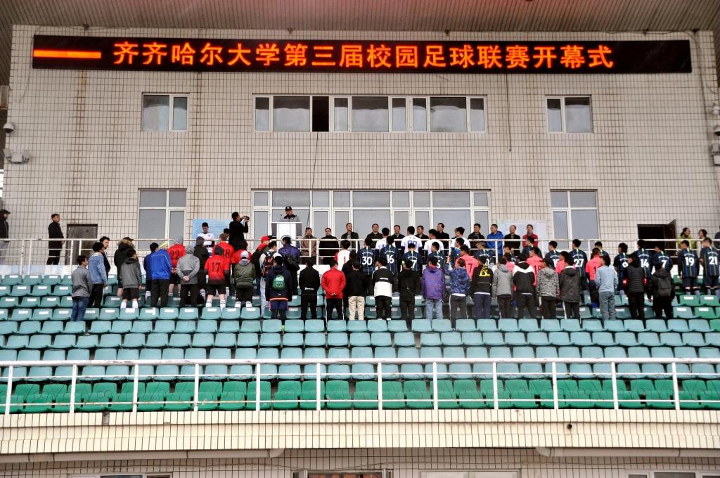 4月17日下午,齊齊哈爾大學(xué)第三屆校園足球聯(lián)賽在西區(qū)體育場(chǎng)開幕,副校長(zhǎng)李英杰、校工會(huì)主席陶佰睿出席開幕式,本屆足球聯(lián)賽組委會(huì)成員、各學(xué)院團(tuán)委書記、輔導(dǎo)員以及各學(xué)院代表隊(duì)參加了開幕式。開幕式由體育學(xué)院院長(zhǎng)張良祥主持。