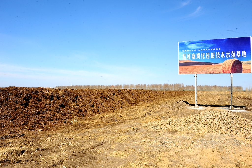 在齊齊哈爾大學(xué)梅里斯科研實(shí)踐農(nóng)場(chǎng),陳桂芝一行先后察看了生命科學(xué)與農(nóng)林學(xué)院有機(jī)農(nóng)業(yè)技術(shù)示范基地和秸稈腐質(zhì)化還田技術(shù)示范基地。青年龍江學(xué)者、我校生命科學(xué)與農(nóng)林學(xué)院教授王志剛介紹了正在實(shí)驗(yàn)中的秸稈腐熟情況,這項(xiàng)技術(shù)可有效化解秸稈直接還田難以腐化和秸稈焚燒帶來(lái)的大氣污染問(wèn)題,同時(shí)以生物質(zhì)炭肥的形式還田,可以最大限度地實(shí)現(xiàn)秸稈中的有機(jī)質(zhì)的循環(huán)利用,減少化肥用量,提升農(nóng)作物產(chǎn)量和品質(zhì),改良土壤環(huán)境,增加農(nóng)民收入。