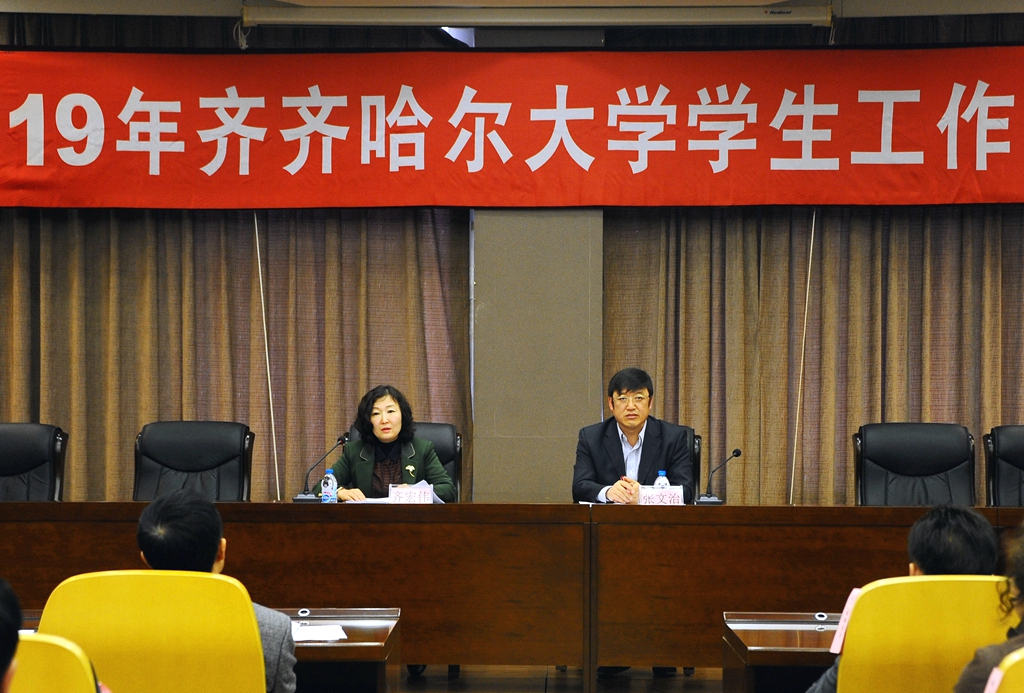 4月26日上午,齊齊哈爾大學2019年學生工作會議在德潤大廈四樓會議室召開。校黨委副書記齊宏偉、張文治出席會議,黨委常委、宣傳統(tǒng)戰(zhàn)部長王曉梅,黨委常委、組織部長馬文輝,相關職能部門負責人、各學院黨委書記、副書記副院長、全體輔導員、班主任代表以及學生工作部(學生處)、團委、招生就業(yè)處全體工作成員參加了會議。會議由齊宏偉主持。