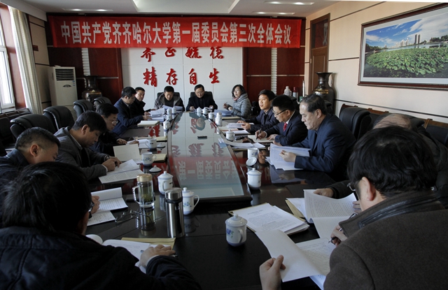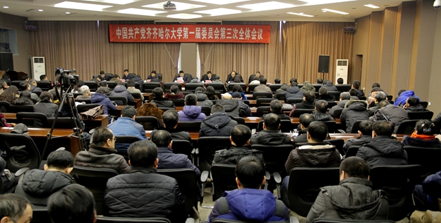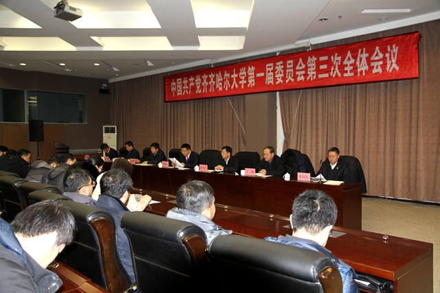 1月9日上午,中國(guó)共產(chǎn)黨齊齊哈爾大學(xué)第一屆委員會(huì)第三次全體會(huì)議在德潤(rùn)大廈四樓會(huì)議室隆重召開。