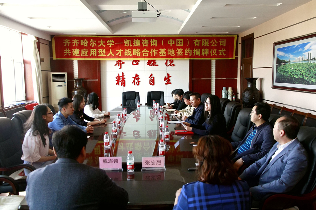 為進(jìn)一步深化校企合作,構(gòu)建協(xié)同育人創(chuàng)新培養(yǎng)模式,5月9日下午,齊齊哈爾大學(xué)與凱捷咨詢(中國(guó))有限公司共建應(yīng)用型人才戰(zhàn)略合作基地簽約揭牌儀式在機(jī)關(guān)樓504會(huì)議室舉行。