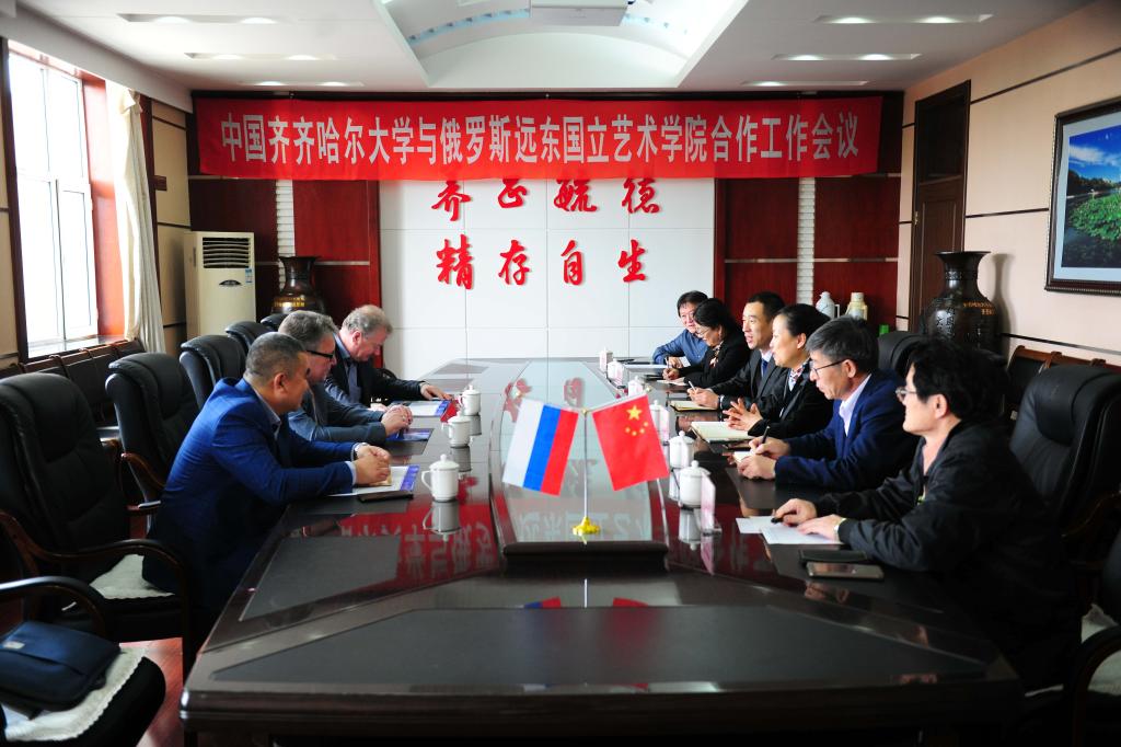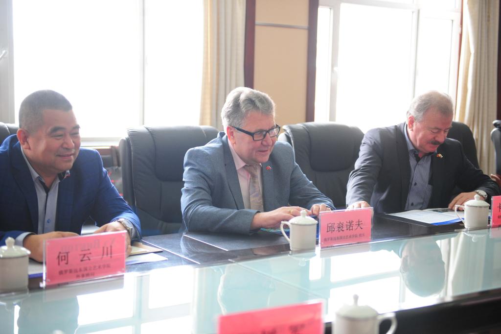 安德烈?酋谷諾夫院長(zhǎng)對(duì)齊齊哈爾大學(xué)的熱情接待表示感謝。他表示,這是第一次來(lái)到齊齊哈爾大學(xué),非常榮幸受邀參加第十屆中俄大學(xué)生文化藝術(shù)節(jié)。他從辦學(xué)歷史、學(xué)科設(shè)置、科研合作等方面介紹了俄羅斯遠(yuǎn)東國(guó)立藝術(shù)學(xué)院,并就本次藝術(shù)節(jié)期間的文化藝術(shù)交流活動(dòng)和兩校間可能展開(kāi)的合作交流與齊齊哈爾大學(xué)領(lǐng)導(dǎo)交換了意見(jiàn)。