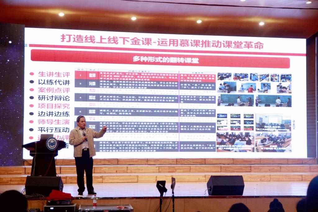 哈爾濱工業(yè)大學(xué)戰(zhàn)德臣教授為會議作專家報告《規(guī)范建設(shè)慕課,推動課堂革命》,他通過“MOOC +SPOCs +翻轉(zhuǎn)課堂”教學(xué)改革方面的實踐成果,系統(tǒng)地解析了一流課程雙萬計劃的精神和實質(zhì);哈爾濱工業(yè)大學(xué)裴秋宇副教授為會議作專家報告《問題邏輯還是選擇成本?——解讀新精品MOOC的黃金法則》;向日葵教育科技有限公司李廣勝副總經(jīng)理為會議作專家報告《線上“金課”的表達》。