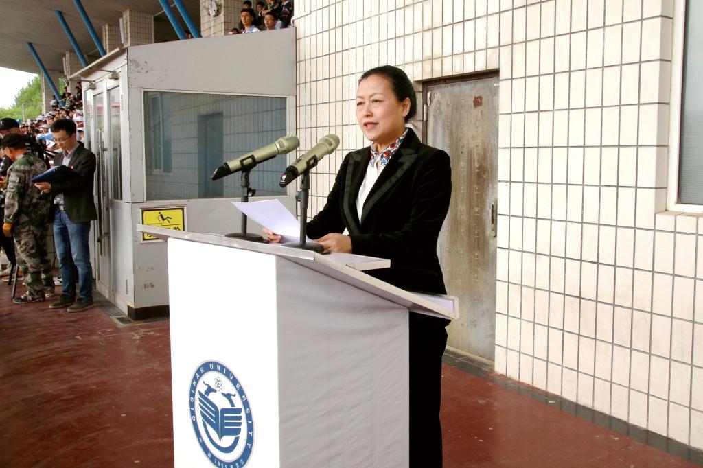 陳桂芝強(qiáng)調(diào),體育強(qiáng)則中國(guó)強(qiáng),國(guó)運(yùn)興則體育興。習(xí)近平總書記在黨的十九大報(bào)告中強(qiáng)調(diào),要廣泛開展全民健身活動(dòng),加快推進(jìn)體育強(qiáng)國(guó)建設(shè)。這為我校發(fā)展體育事業(yè)、推進(jìn)體育教育工作、提高學(xué)生體質(zhì)健康水平指明了發(fā)展方向、提供了根本遵循。今年是我們貫徹落實(shí)學(xué)校第二次黨代會(huì)精神的開局之年,也是全面推進(jìn)“十三五”事業(yè)發(fā)展規(guī)劃的關(guān)鍵之年。希望全校上下以本屆運(yùn)動(dòng)會(huì)為契機(jī),進(jìn)一步加強(qiáng)體育工作、開展體育運(yùn)動(dòng)、樹立體育精神,努力培養(yǎng)德智體美勞全面發(fā)展的社會(huì)主義建設(shè)者和接班人,以更堅(jiān)定的信心、更健康的體魄、更飽滿的熱情,奮力推進(jìn)學(xué)校高質(zhì)量、內(nèi)涵式發(fā)展,以優(yōu)異成績(jī)向新中國(guó)成立70周年獻(xiàn)禮!