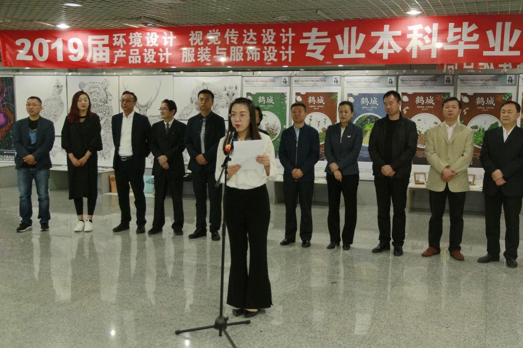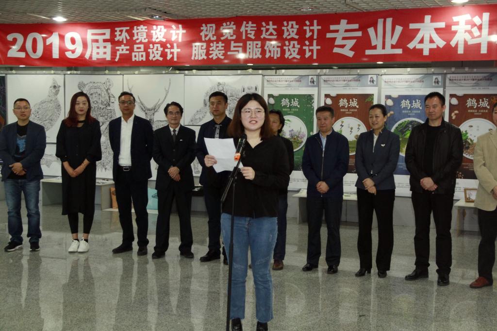 環(huán)境設(shè)計(jì)專業(yè)葛月老師在開(kāi)幕式上發(fā)言,她代表所有畢業(yè)設(shè)計(jì)指導(dǎo)教師對(duì)同學(xué)們畢業(yè)設(shè)計(jì)創(chuàng)作中付出的艱辛努力給予高度評(píng)價(jià),并希望2019屆畢業(yè)生們不忘初心,迎風(fēng)向前,在藝術(shù)設(shè)計(jì)道路上取得更多豐碩成果。