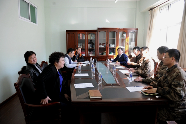 3月11日下午,我校在中區(qū)辦公樓401會議室舉行軍校共建工作座談會。校黨委副書記蓋元臣出席會議。中國人民解放軍65448部隊(duì)政治處主任姜殿舟一行與會。我校黨委宣傳統(tǒng)戰(zhàn)部部長王曉梅,武裝部部長吳剛,文學(xué)與歷史文化學(xué)院黨委書記張振民,音樂與舞蹈學(xué)院院長孫相根,校團(tuán)委副書記遲生茂等參加了座談。
