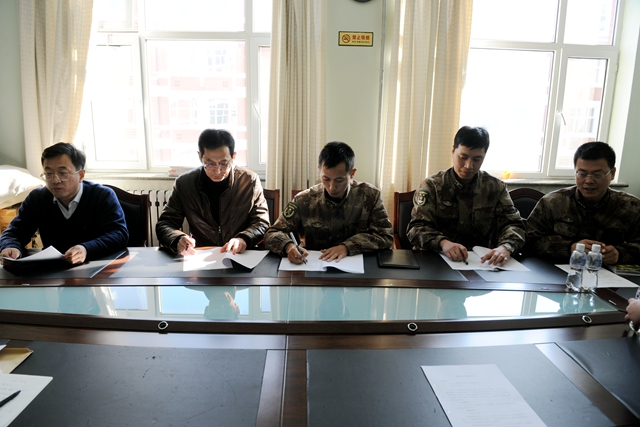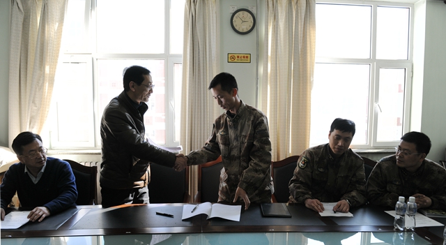 會議上,中國人民解放軍65448部隊(duì)政治處主任姜殿舟與我校武裝部部長吳剛代表軍校雙方簽署了軍校共建協(xié)議。