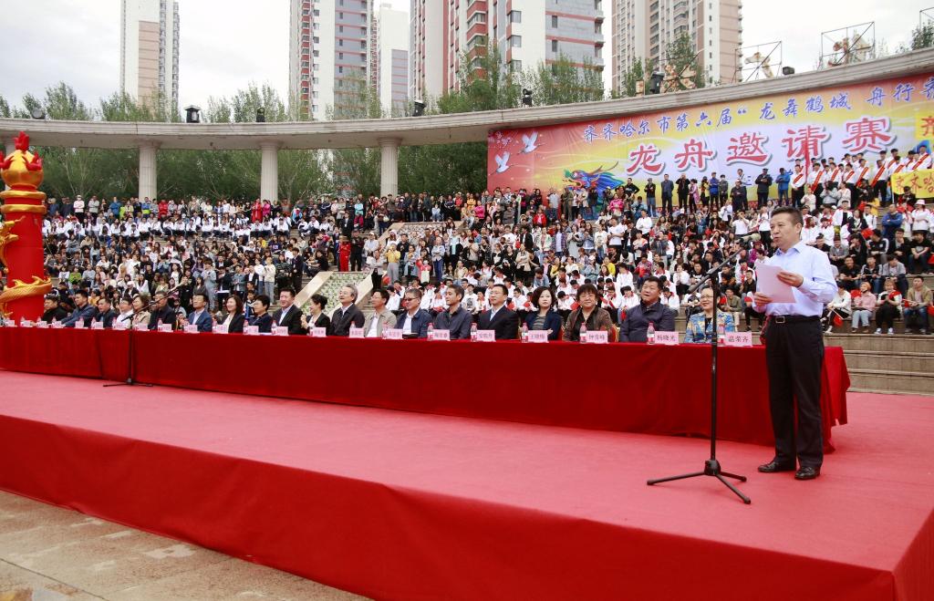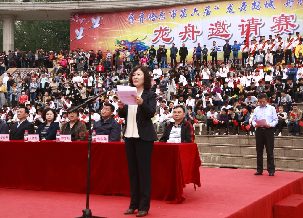 齊宏偉指出,賽龍舟是我國具有悠久歷史、深受人民喜愛的民俗體育活動,體現(xiàn)了中華民族同舟共濟、團結(jié)拼搏、奮勇爭先的精神。為弘揚中華優(yōu)秀傳統(tǒng)文化,發(fā)揮大學(xué)文化傳承創(chuàng)新作用,我校與齊齊哈爾市已經(jīng)成功合作舉辦了五屆“龍舞鶴城 舟行齊大”龍舟邀請賽。這項活動有力推動了文化強市建設(shè),豐富了齊市人民的精神文化生活,現(xiàn)已成為魅力鶴城一道亮麗的城市文化風(fēng)景線和校地合作共建的文化品牌。希望通過本屆龍舟邀請賽的舉辦,能夠進一步激發(fā)起鶴城人民和齊大師生“熱愛祖國、建設(shè)家鄉(xiāng)”的熱情,為現(xiàn)代化新龍江新鶴城建設(shè)而不懈奮斗,以優(yōu)異成績迎接新中國成立70周年!最后,她預(yù)祝齊齊哈爾市第六屆“龍舞鶴城 舟行齊大”龍舟邀請賽取得圓滿成功!