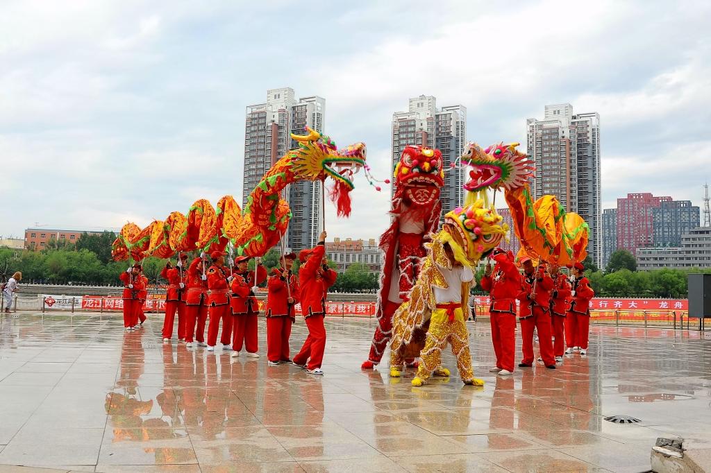 由齊齊哈爾市民帶來的舞龍舞獅表演,慷慨激昂,粗獷豪放,展示了中華兒女在中國共產(chǎn)黨領(lǐng)導(dǎo)下頂天立地、威武雄壯、不屈不撓、英勇頑強的民族性格,象征著風(fēng)調(diào)雨順國泰民安,中華民族的偉大復(fù)興勢不可擋,勇往直前。