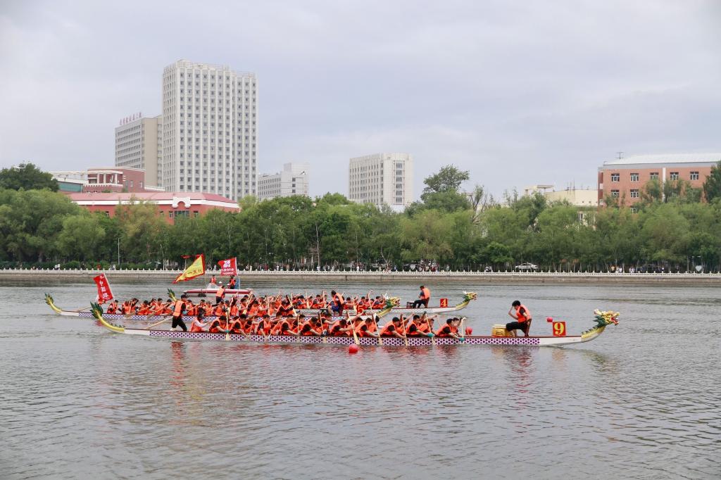 齊齊哈爾大學(xué)與齊齊哈爾市校地攜手共同舉辦龍舟賽事,是學(xué)校履行大學(xué)職能、助力文化強市建設(shè)、傳承引領(lǐng)區(qū)域文化發(fā)展的擔(dān)當(dāng)與作為,更是學(xué)校踐行文化興省和高教強省戰(zhàn)略、打造校地合作精品文化項目的創(chuàng)新之舉。六年來,在文化傳承和創(chuàng)新的歷史使命的鼓舞下,齊大學(xué)子與鶴城精英們用拼搏和汗水延續(xù)端午節(jié)特色傳統(tǒng),為鶴城打造了一場又一場民俗風(fēng)情濃郁、地方特色突出、群眾喜聞樂見的龍舟賽事,充分展現(xiàn)了以愛國主義為核心的民族精神和以改革創(chuàng)新為核心的時代精神,展現(xiàn)了齊齊哈爾市獨特的人文魅力和拼搏精神,展現(xiàn)了齊大學(xué)子的奮進活力和青春風(fēng)采。在習(xí)近平新時代中國特色社會主義思想和黨的十九大精神的引領(lǐng)下,齊大學(xué)子與鶴城各界精英在比賽中,以舟樹德,以槳銘志,揮灑汗水,奮力拼搏,用喜聞樂見的形式共同喜慶新中國成立七十周年,共同紀(jì)念五四運動一百周年,為鶴城人民奉獻了一道民俗盛宴,演繹了一場優(yōu)秀傳統(tǒng)文化嘉年華。