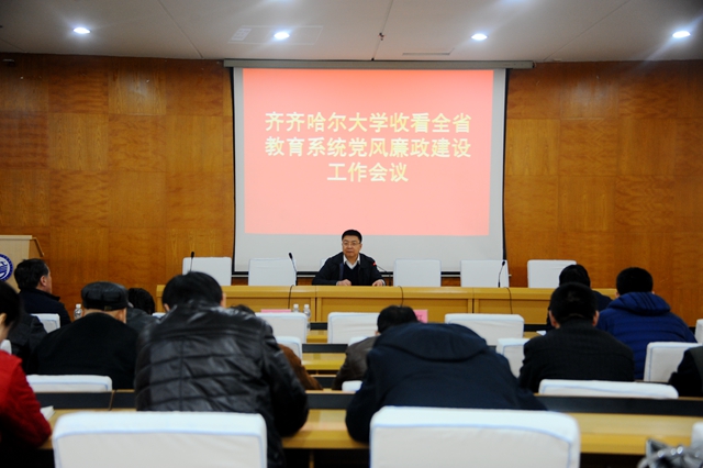 3月15日上午,我校在西區(qū)學(xué)術(shù)報(bào)告廳認(rèn)真組織參加省委高校工委、教育廳黨組召開(kāi)的全省教育系統(tǒng)黨風(fēng)廉政建設(shè)工作視頻會(huì)議。學(xué)校黨委書記李海紅,黨委副書記蓋元臣,黨委常委、常務(wù)副校長(zhǎng)鄭喜群,黨委常委、副校長(zhǎng)王剛,黨委常委、副校長(zhǎng)李英杰,黨委常委、紀(jì)委書記姜國(guó)慶等在校的校領(lǐng)導(dǎo)、各單位(部門)黨政負(fù)責(zé)人、紀(jì)委委員及專職紀(jì)檢監(jiān)察干部60余人收看了視頻會(huì)議。