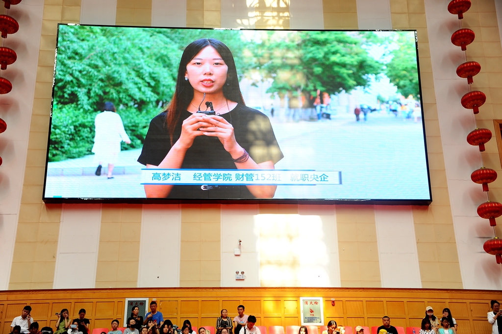 在畢業(yè)典禮正式開始前,播放了校黨委宣傳統(tǒng)戰(zhàn)部精心制作的2019屆畢業(yè)生畢業(yè)感言視頻《感恩齊大 放飛夢想》,共錄制了27位2019屆優(yōu)秀本科生、研究生、留學生代表對大學生活的深情回憶,對母校的無限眷戀,對未來的美好暢想。(點擊觀看《感恩齊大 放飛夢想》)