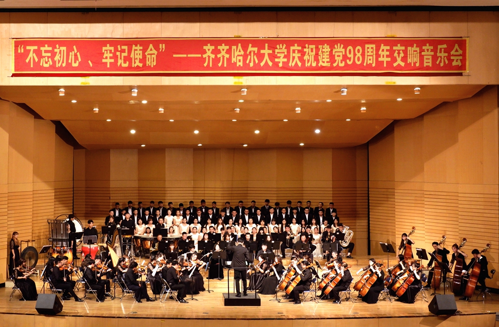 7月1日晚,“不忘初心 牢記使命”齊齊哈爾大學(xué)慶祝中國共產(chǎn)黨成立98周年交響音樂會在音樂廳隆重舉行。