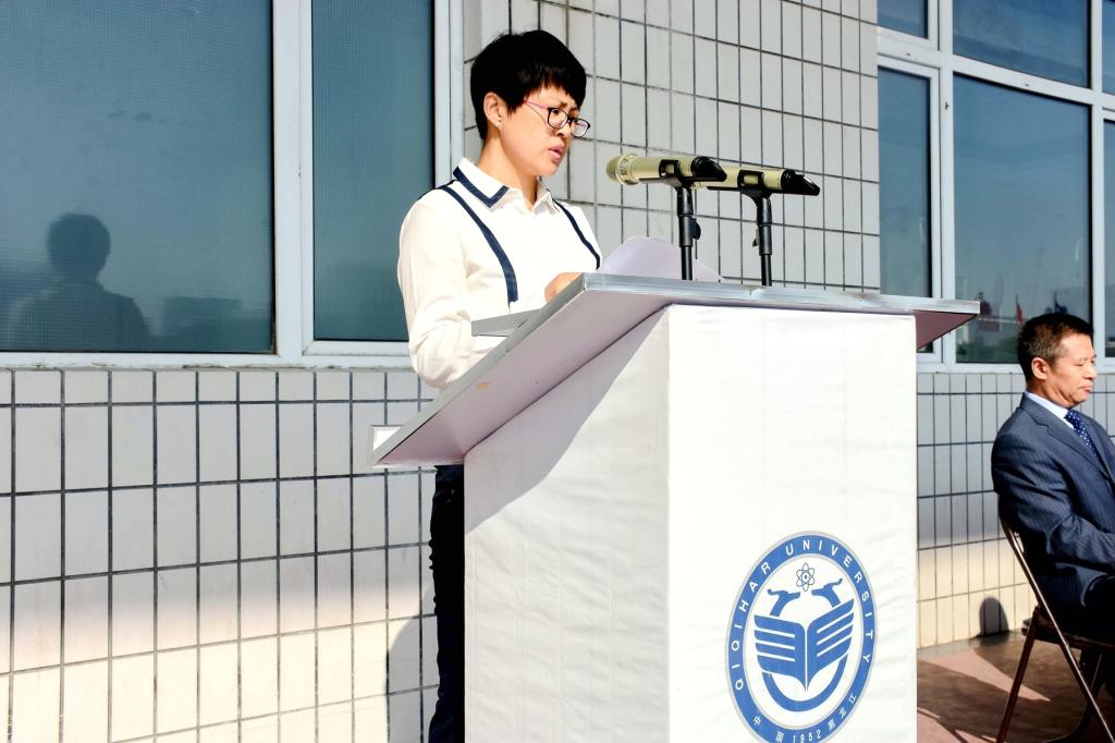 校長(zhǎng)陳桂芝在大會(huì)上講話(huà)。她代表學(xué)校全體師生員工,向2019級(jí)全體新同學(xué)的到來(lái)表示熱烈的歡迎!向培養(yǎng)、支持他們一路走來(lái)的老師家長(zhǎng)們致以崇高的敬意!向承訓(xùn)部隊(duì)武警齊齊哈爾支隊(duì)的各位同志致以衷心的感謝!她說(shuō),齊齊哈爾大學(xué)是一所歷史悠久的大學(xué);是一所與時(shí)俱進(jìn)的大學(xué);是一所擁有夢(mèng)想的大學(xué)。你們的到來(lái),為齊齊哈爾大學(xué)慶祝新中國(guó)成立70周年華誕增加了更多的青春元素,也為學(xué)校事業(yè)發(fā)展建設(shè)注入了更多的新鮮動(dòng)力。習(xí)近平總書(shū)記說(shuō)過(guò),每一代人有每一代人的長(zhǎng)征路,每一代人都要走好自己的長(zhǎng)征路。今天,你們由五湖四海匯聚到龍江鶴城,開(kāi)啟了人生道路上的新征程?!吧琊⒔?jīng)綸地,風(fēng)云際會(huì)期”。我相信,你們?cè)邶R大一定能夠成就美好青春。
