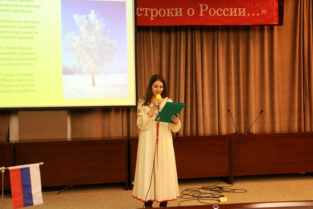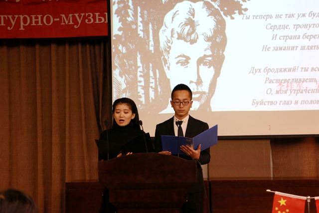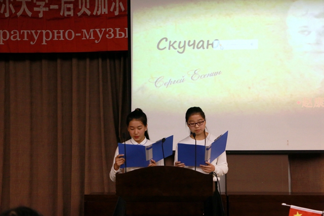 14日至16日,為期三天的《俄羅斯之夜》活動(dòng)中,兩校師生共同舉辦了《俄羅斯詩歌、散文朗誦比賽》,《慶祝俄羅斯偉大詩人葉賽寧誕辰120周年文學(xué)會(huì)客廳》,《俄羅斯經(jīng)典歌曲比賽》,《俄羅斯短劇展演》,以及主題為“俄羅斯、祖國、勝利”的慶祝偉大俄羅斯衛(wèi)國戰(zhàn)爭(zhēng)勝利70周年《文學(xué)音樂會(huì)》和俄羅斯國情知識(shí)競(jìng)賽等系列活動(dòng)。