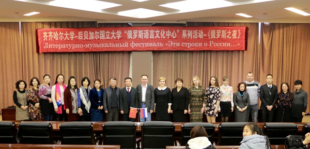 在我校國際交流合作處、現(xiàn)代教育技術(shù)中心、教務(wù)處、外國語學(xué)院俄語系以及俄羅斯后貝加爾國立大學(xué)有關(guān)方面的精心籌備與共同努力下,12月14日至16日,慶祝齊齊哈爾大學(xué)與俄羅斯后貝加爾國立大學(xué)“俄羅斯語言文化中心”成立兩周年暨《俄羅斯之夜》系列文化交流活動(dòng)在我校舉行。