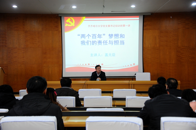 為貫徹落實(shí)省委、省委高校工委關(guān)于做好基層黨組織書(shū)記集中輪訓(xùn)的部署要求,扎實(shí)有效推進(jìn)我校黨支部書(shū)記隊(duì)伍建設(shè)“三推兩強(qiáng)”工程。2015年12月15日下午,學(xué)校在西區(qū)主樓學(xué)術(shù)報(bào)告廳召開(kāi)了齊齊哈爾大學(xué)黨支部書(shū)記培訓(xùn)班開(kāi)班儀式。校黨委副書(shū)記蓋元臣同志出席開(kāi)班式并為培訓(xùn)班學(xué)員做了題為《“兩個(gè)百年”夢(mèng)想和我們的責(zé)任與擔(dān)當(dāng)》的首場(chǎng)專(zhuān)題輔導(dǎo)報(bào)告。開(kāi)班式由黨委組織部副處級(jí)組織員徐海祥同志主持,全校各基層單位黨支部書(shū)記參加了開(kāi)班式。